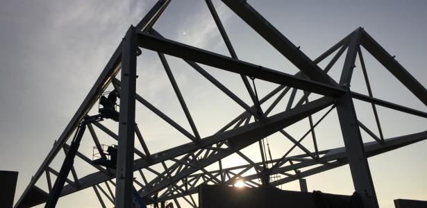 Une structure en acier complexe forme la base de ce terminal industriel de matériaux de construction. Le concepteur Tetra architecten a ainsi créé un entrepôt raffiné. Ils ont littéralement placé une règle le long du quai et se sont basés sur les pieux pour diviser le vaste site en sections. Ils sont partis d'une couverture de dix mètres, qu'ils ont ensuite répétée vingt fois. Le résultat ? Un hangar unique de forme allongée, le tout relevé d’un toit en dents de scie.